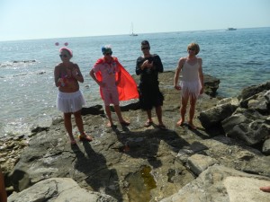 Vsem skupaj sporočamo, da se v Pineti vzgojitelji ne delijo več na nove in stare, saj so še včerajšnji novinci uspešno prestali krst. Preizkusili so se v različnih disciplinah- v nabiranju grške solate, podiranju keglov, veslanju in plavanju. Ker jih je tekmovanje dobro izmučilom si jim naši pitači ponudili tudi beljakovinski napitek, ki se ga niso branili 🙂 Umili so si zobe, nekateri so dobili še žvečilni gumi. Na krstu ni manjkal niti sam kip MEtalca diska, tekmovalci pa so si za nagrado prislužili kip lepe Helene 🙂 Njihova pot se je zaključila na pineškem pokopališču, kjer so si pod glavo nastavili nagrobni kamen s šopkom. Na koncu so povedali še zaprisego, kjer so obljubili spoštovanje do vodstva izmene, ljubezen do otrok in zvestobo III. izmeni.