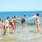 Poleg otrok so se zmenkarij udeležili tudi vzgojitelji… ja, res je, v Pineti že diÅ”i po ljubezni š Danes dopoldne so potekale vodne igre na plaži… otroci so se pomerili v razliÄnih nalogah,vmes pa so oz neba padale Äisto prave vodne bombe š