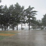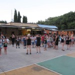 Spet se oglašamo iz Pinete, kjer je dopoldne potekalo po že ustaljenih tirnicah. Vstajanje, telovadba, zajtrk, krožki, plaža, kosilo,… No, pri kosilu se je pa vsa stvar nekoliko zapletla. Po nekaj strelah in grmenju se je tako močno ulilo, da smo lahko samo uživali v siloviti poletni plohi.