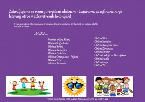 Hvala vsem občinam ki ste sofinancirale letovanje otrokom v zdravstvenih kolonijah PINETA Novigrad.