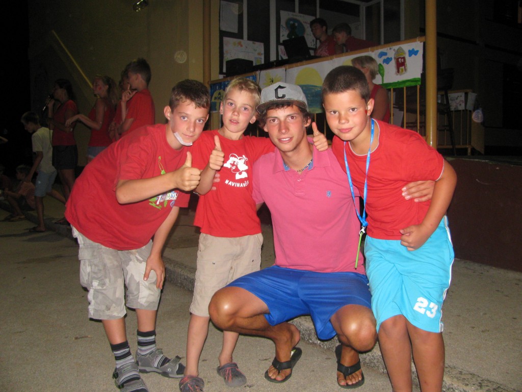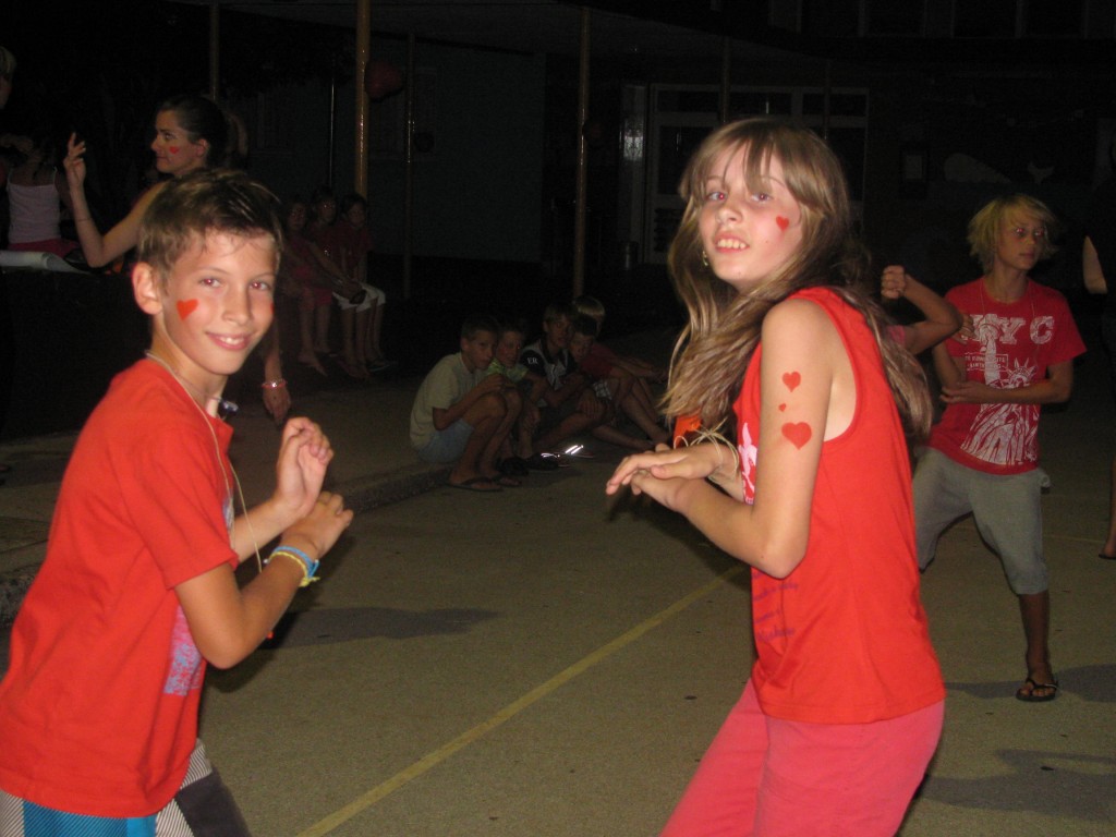 Nedelja, že naÅ” 7. dan. Skoraj smo že na polovici. Vreme tukaj prekrasno, toplo, malo pihlja. Idealno za naÅ”e poÄitnice. VÄeraj je bilĀ enkraten dan. Dopoldne smo se kopali, raziskovali obalo in kartali. Z naÅ”imi slikami smo dopolnjevaliĀ galerijo, ki nastaja po ograjah stavbe v kateri spimo.Ā Popoldne smo izdelovali pletene zapestnice in se pripravljali na veÄerno prireditev srÄkov ples. NaÅ”i neplavalci vsak dan pridno obiskujejo plavalni teÄaj. ZveÄer smo priredili srÄkov ples. Prijavilo se je veliko parov. Pravzaprav so se prijavila dekleta in fantje posamezno, vsak si je moral poiskati svoj par po sistemu Julija poiÅ”Äe svojega Romea. Pari so tekmovali vĀ razliÄnih plesnih disciplinah. OÄi stroge komisije so izloÄale pare in na koncu je ostal le najboljÅ”i par. Vsi tekmovalci so bili obleÄeni v rdeÄe in na licih so imeli narisane srÄke.